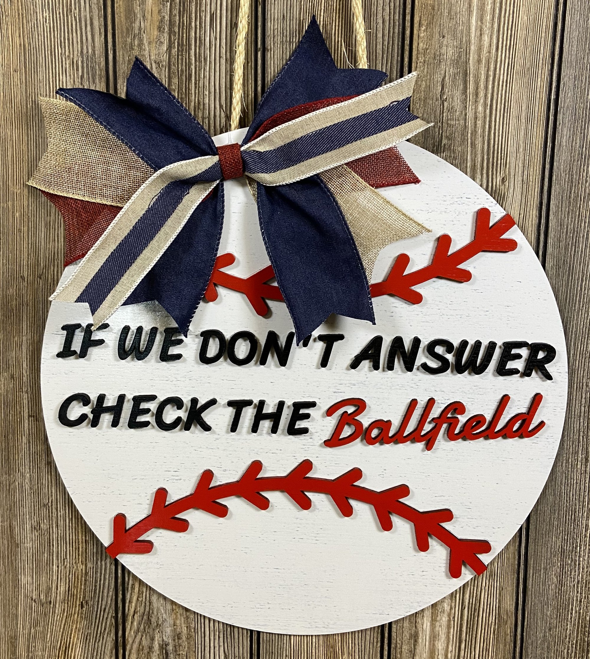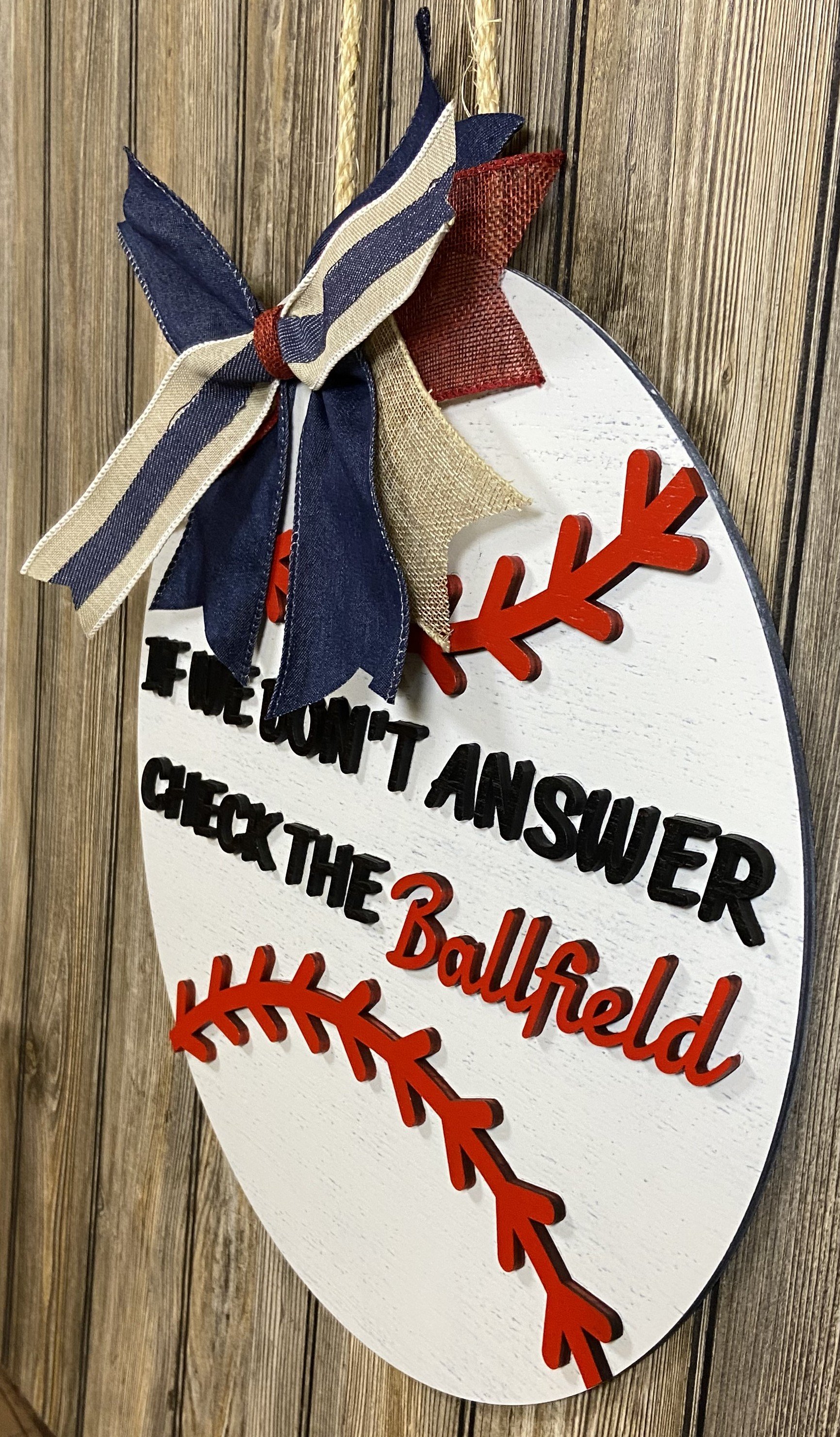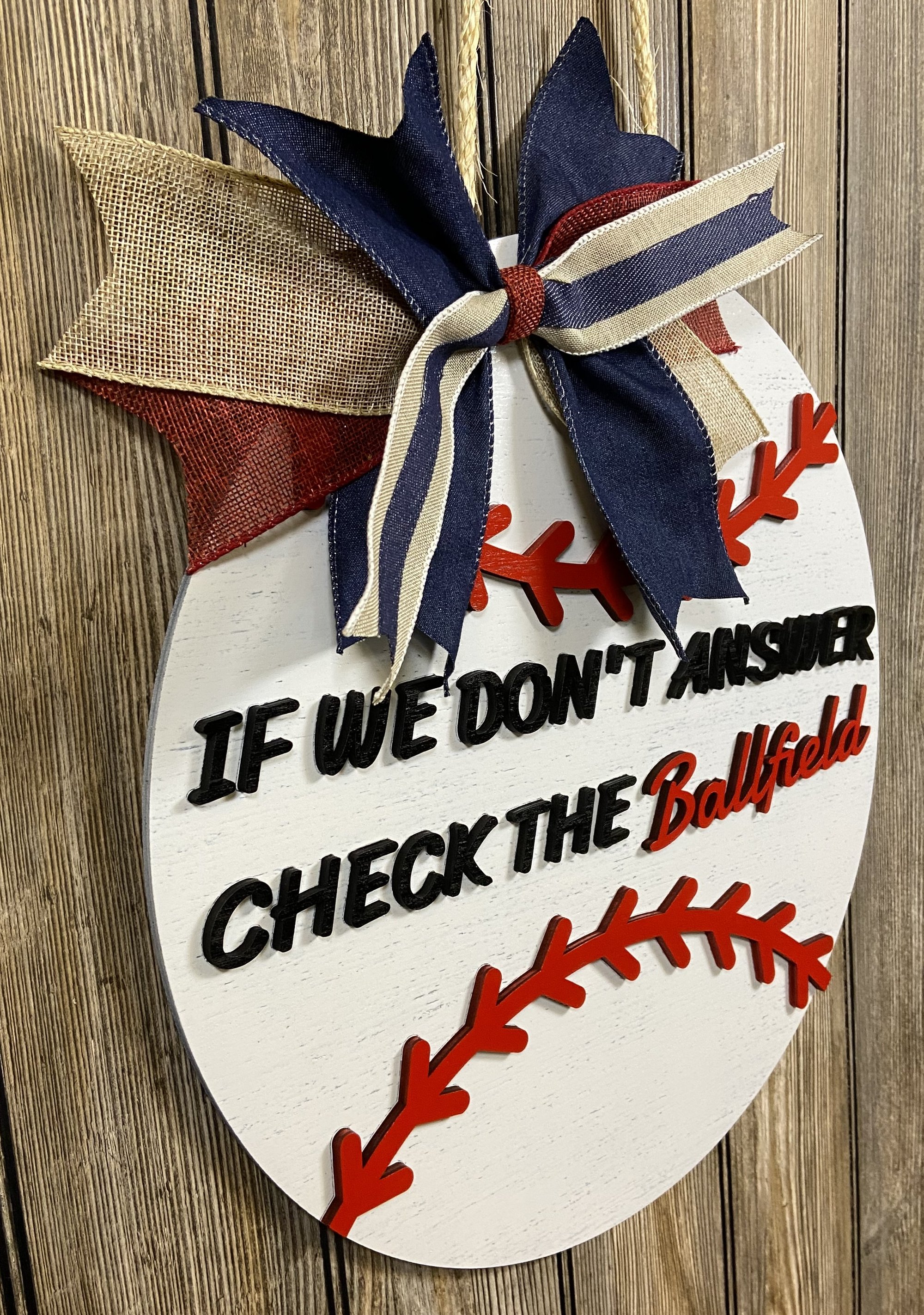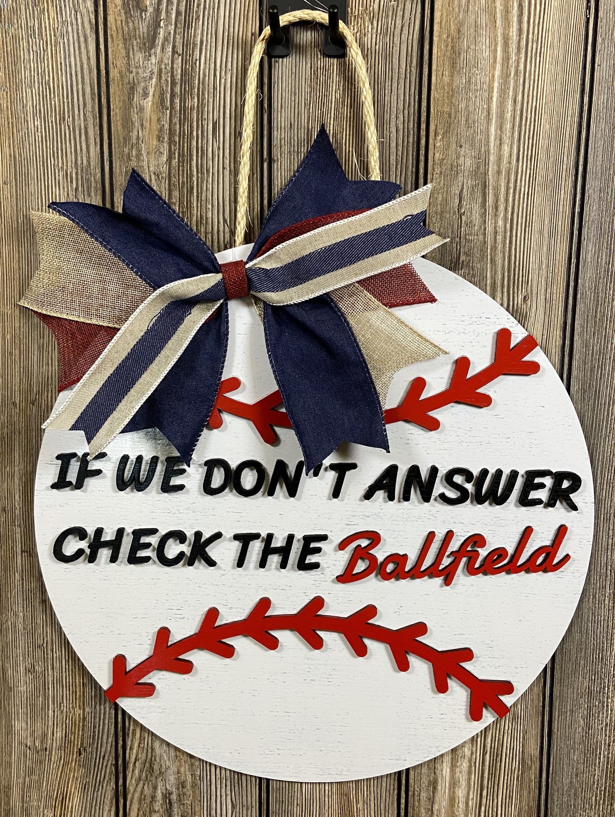 15” Baseball‑Style Door Hanger – If We Don’t Answer, Check the Ballfield