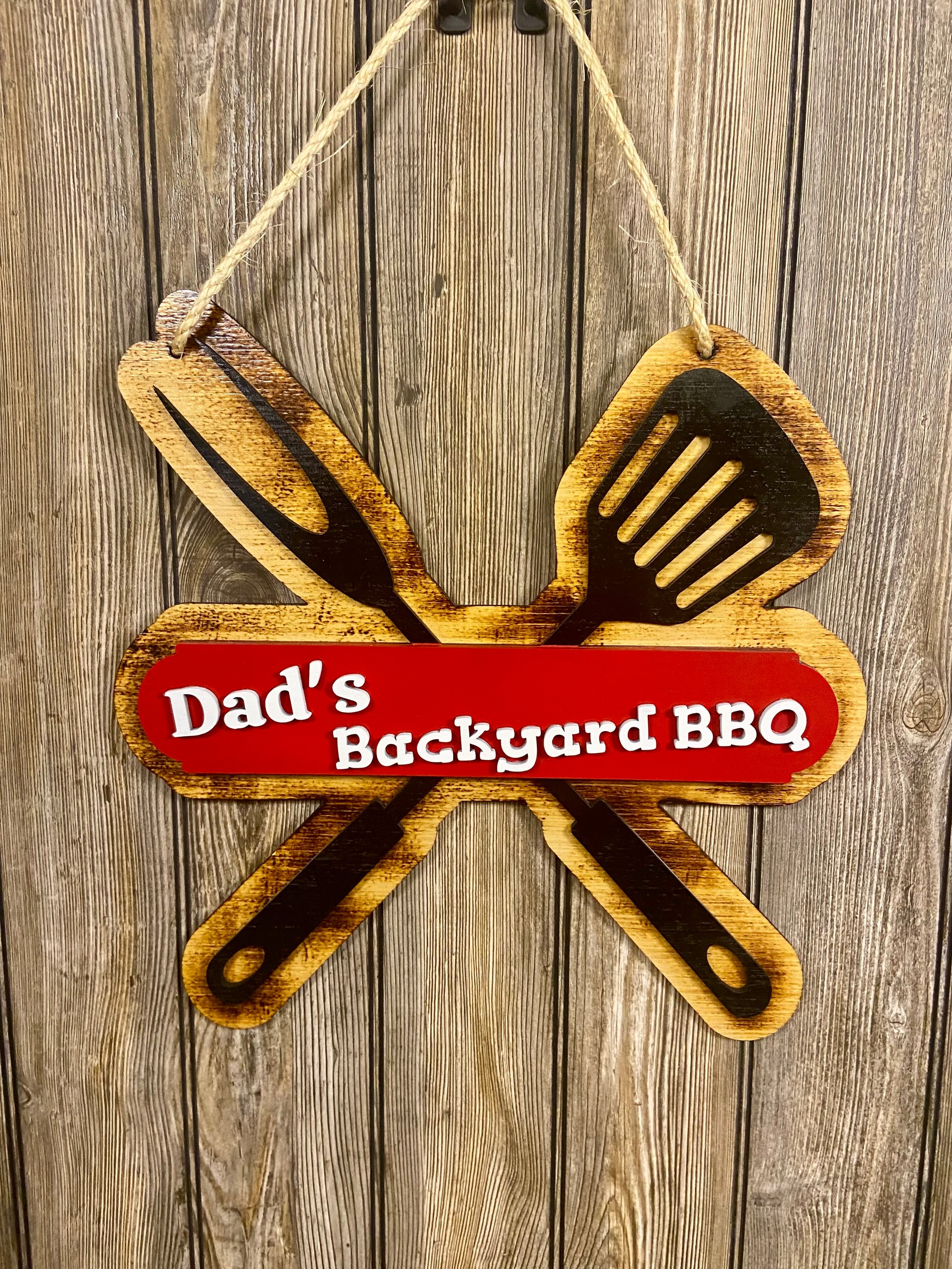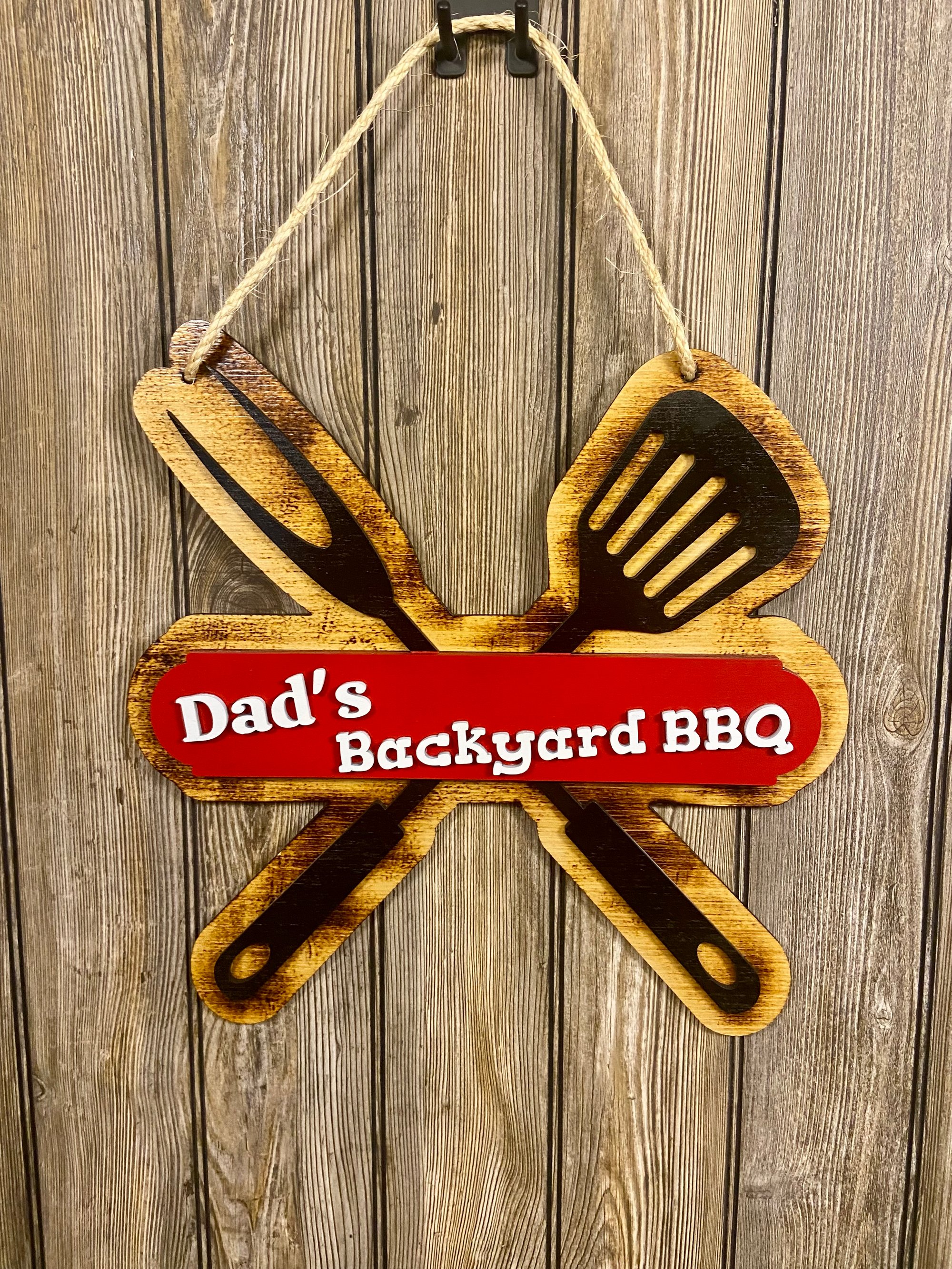 This 15-inch wooden sign is the perfect addition to any backyard, patio, or man cave. Designed and handcrafted in my small workshop, each piece is laser‑cut, hand‑finished, and built to last. Whether Dad is the king of the grill or just loves showing off his outdoor cooking space, this sign brings personality and charm to his favorite spot.
